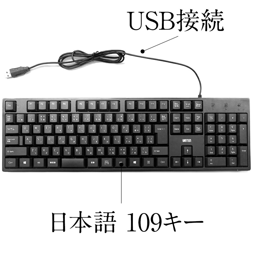こちらの商品は、「ワイヤレスマウス WT-MS01-BK」と、「有線キーボード WT-KBU01-BK」とのセット商品となります。