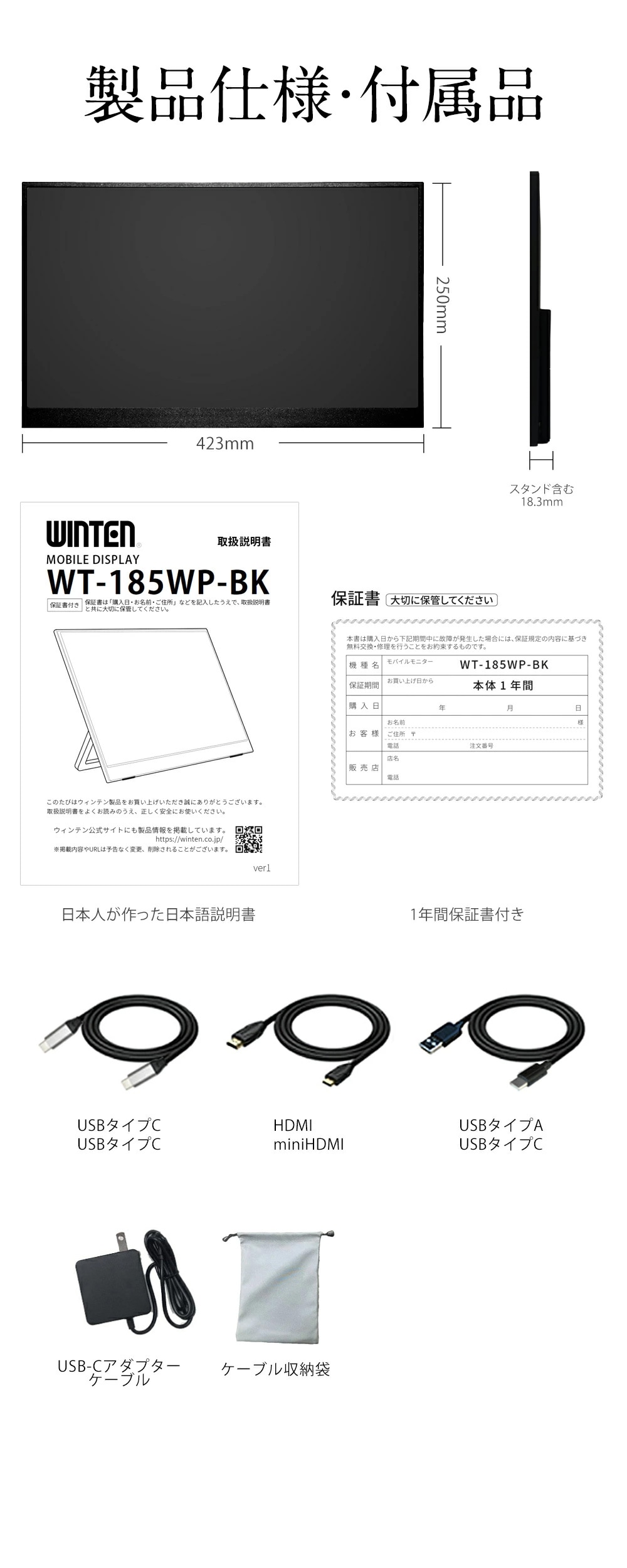 タッチ機能 モバイルモニター 高画質 フルHD 15.6インチ Winten WT-156LTF-BK 1年保証 5581